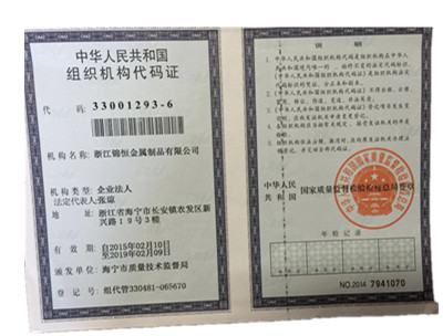 浙江錦恒金屬制品有限公司組織機構代碼證